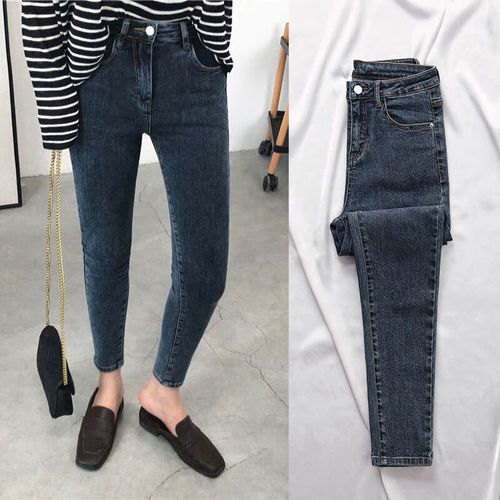 牛仔裤女紧身小脚裤2020新款春冬季裤子高腰显瘦铅笔裤潮ins 蓝灰色