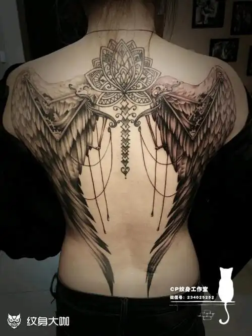 翅膀纹身图片_背部水墨纹身图案