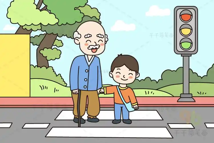 简笔画--文明礼仪之助人为乐--过马路
