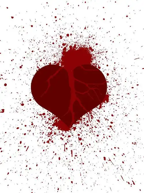 破碎的心和一滴血或撕裂的黑色图案