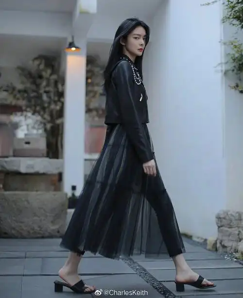 傅菁一字带高跟鞋