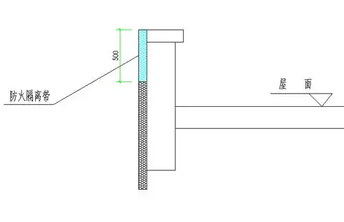 屋面与外墙之间应采用宽度不小于500mm的不燃材料设置防火隔离带进行