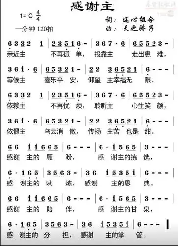 973首感谢主耶稣赞美诗歌谱