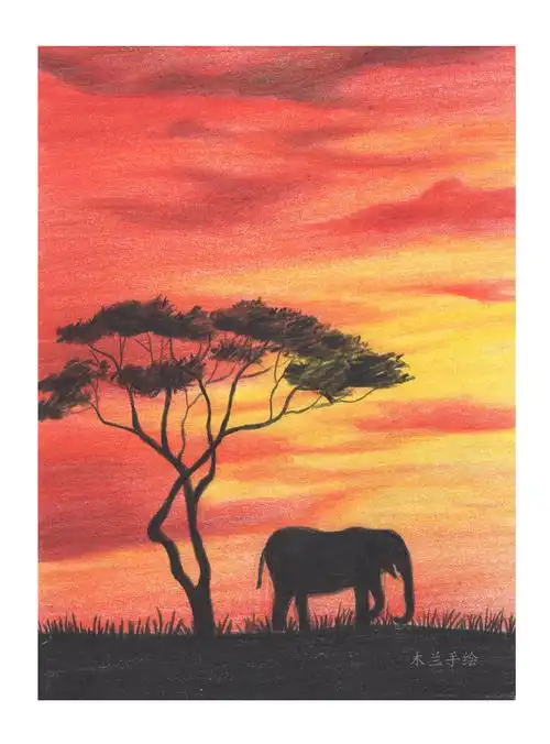 彩铅风景02落霞满天含视频