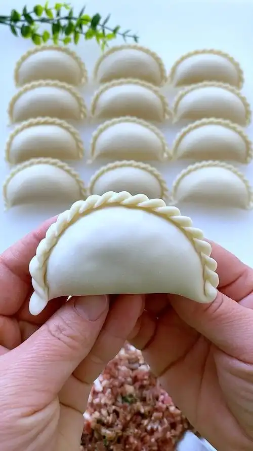 09饺子的实用包法,过年露一手!09第一种:对折后拇指不要捏 - 抖音