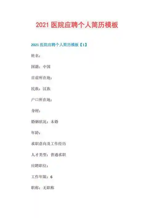 个人简历表格求职简历模板doc