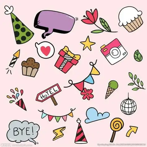 烟花,生日帽子,生日礼物,盒子,礼物盒,礼物简笔画,草莓蛋糕,装饰画