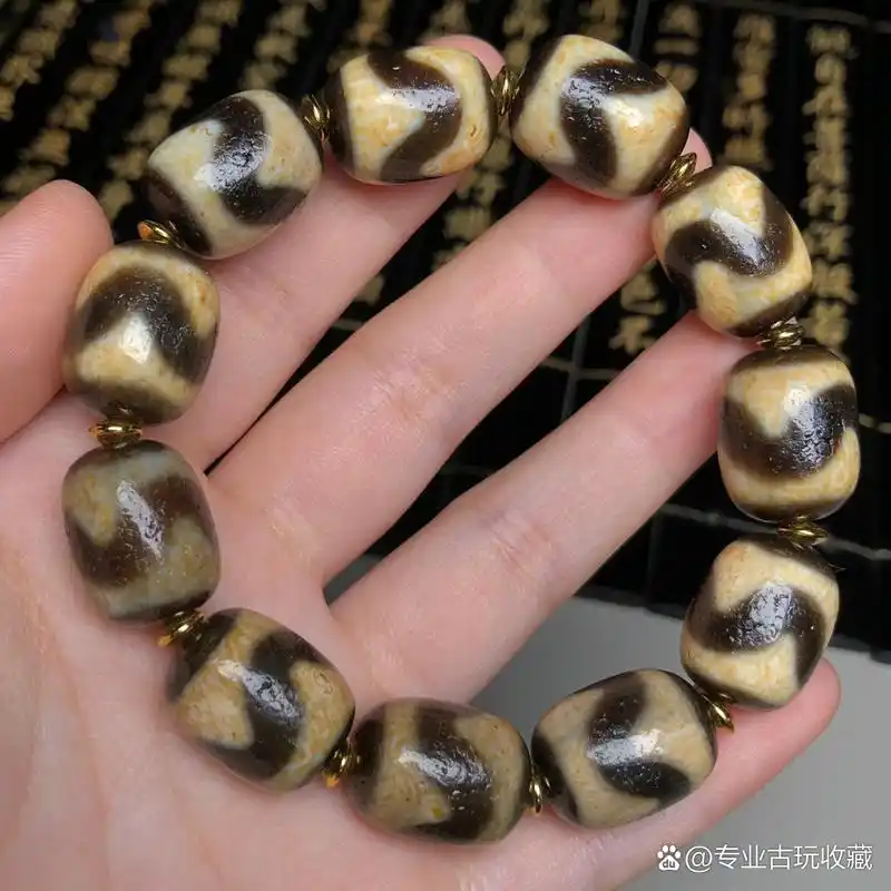 双虎牙天珠黑白分明,皮壳细腻,值得一观#越盘越上头的奇怪玩 - 抖音