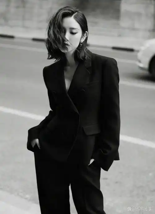 唐艺昕黑色西装造型时尚大气,短发齐肩清爽干练,展现出女性柔美和实力
