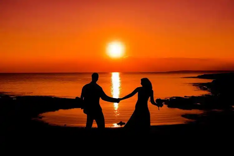 海边夕阳 font color=red>甜 /font>蜜情侣剪影4k图片