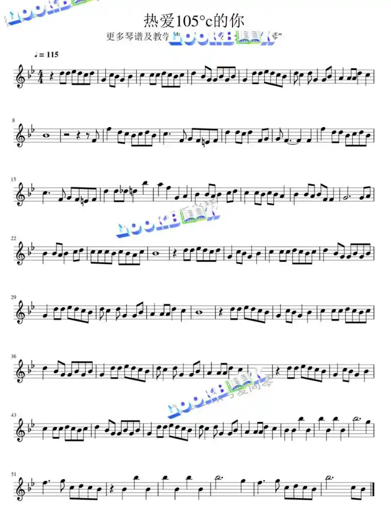 热爱105℃的你-c调版钢琴谱-虫虫钢琴