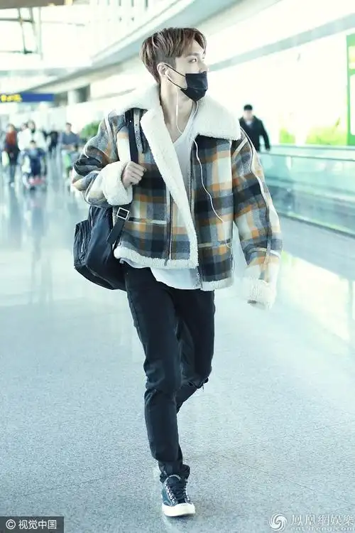 张艺兴复古风现身机场