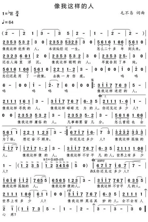 像我这样的人_歌谱简谱_哆来咪123曲谱网