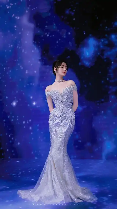 迪丽热巴,蓝色人鱼裙国色天香