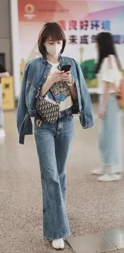 王子文现身上海机场,穿搭时髦亮眼,牛仔裤也能玩性感?