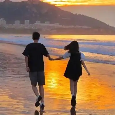 情侣头像海边日落背影