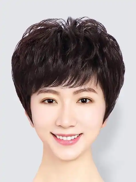 45岁圆脸女人短发发型 中年女士剪出的短发图集 - 圆脸发型 - 发型社