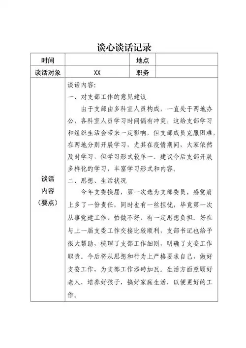 一对一谈心谈话记录表一对一谈心谈话记录
