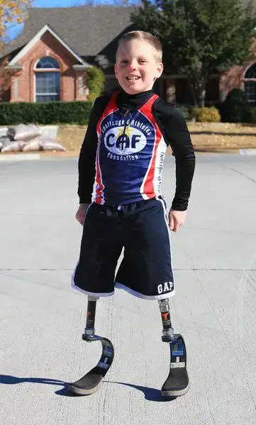 一名因患有罕见爆发性紫癜而膝部以下截肢的7岁英国男孩,日前在没有
