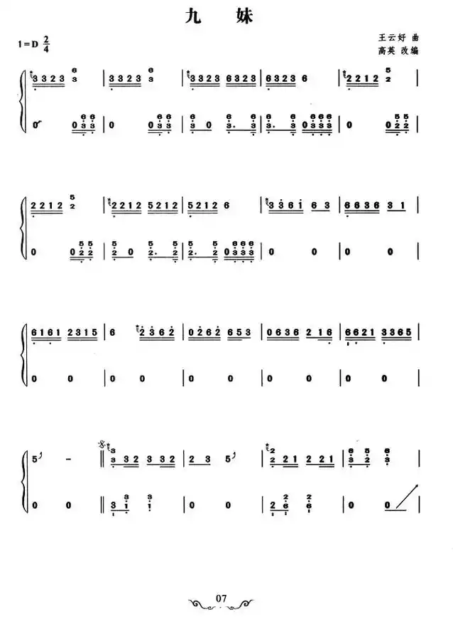 黄鹤翔《九妹》简谱民族歌曲