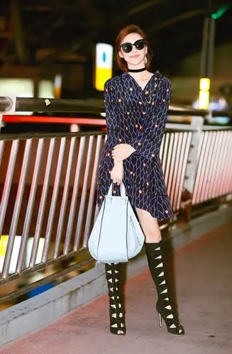 袁姗姗穿搭有一套,衬衫配"液体裙"张扬高调,黑色长靴气场全开