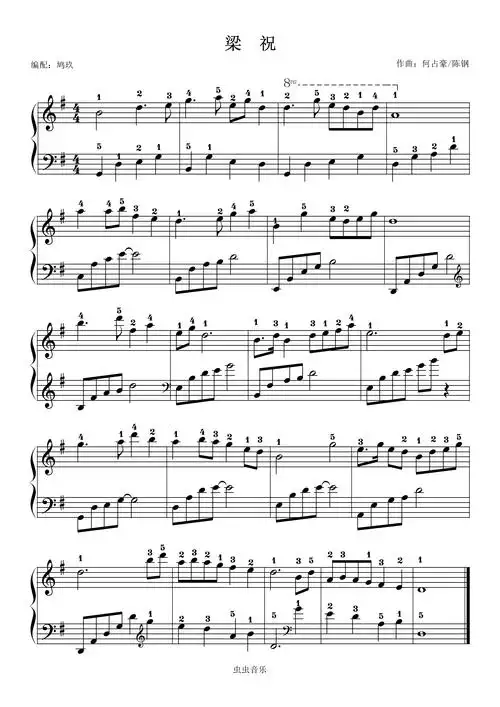 梁祝 理查德克莱德曼 轻音乐初级指法版钢琴谱-136****9985-虫虫钢琴
