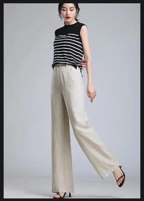 棉麻阔腿裤女高腰垂感直筒裤长裤大码宽松九分裤亚麻休闲女士裤子