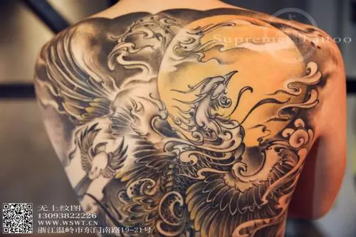 女性背部霸气的黑灰纹身图案欣赏