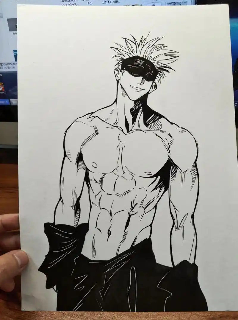 男生腹肌漫画线稿 - 抖音