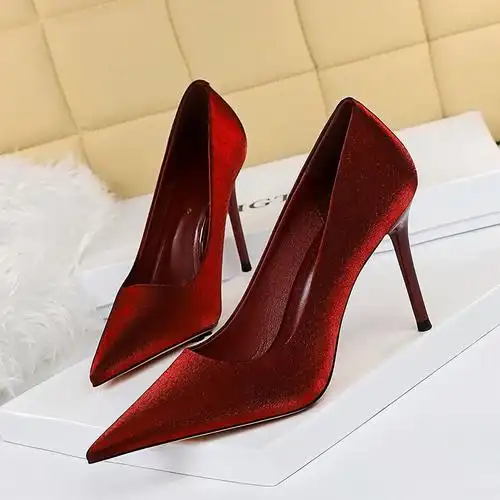 春季女鞋新款单鞋简约大红色高跟鞋绒面尖头单鞋婚鞋新娘鞋子
