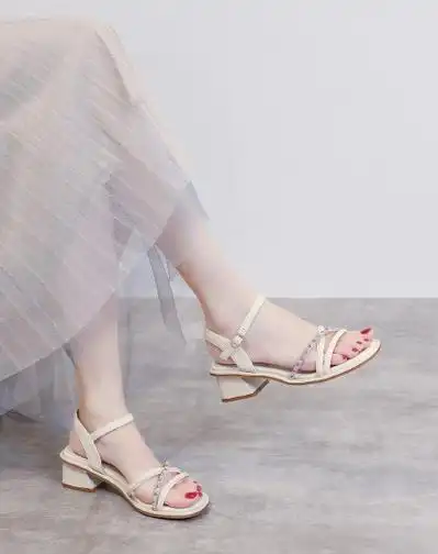 大东凉鞋女2021年新款百搭时尚夏季一字带女鞋晚晚风中跟粗跟法式