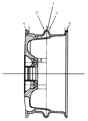 车轮辐板截面轮廓曲线中央纵 轴线的直线段在轮辋一侧与由表达式y=-0