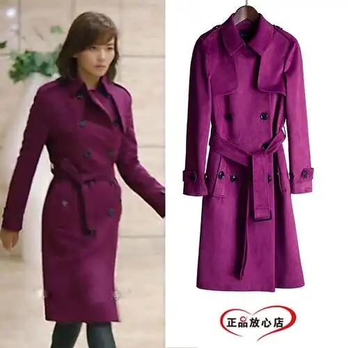 欢乐颂刘涛安迪同款蓝色风衣长款外套女春秋2019新款双排扣呢大衣