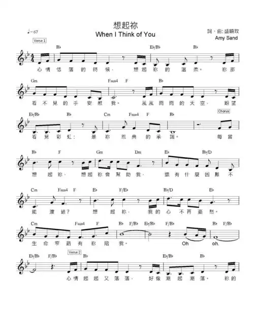 想起你 - 简谱 - 歌谱简谱大全