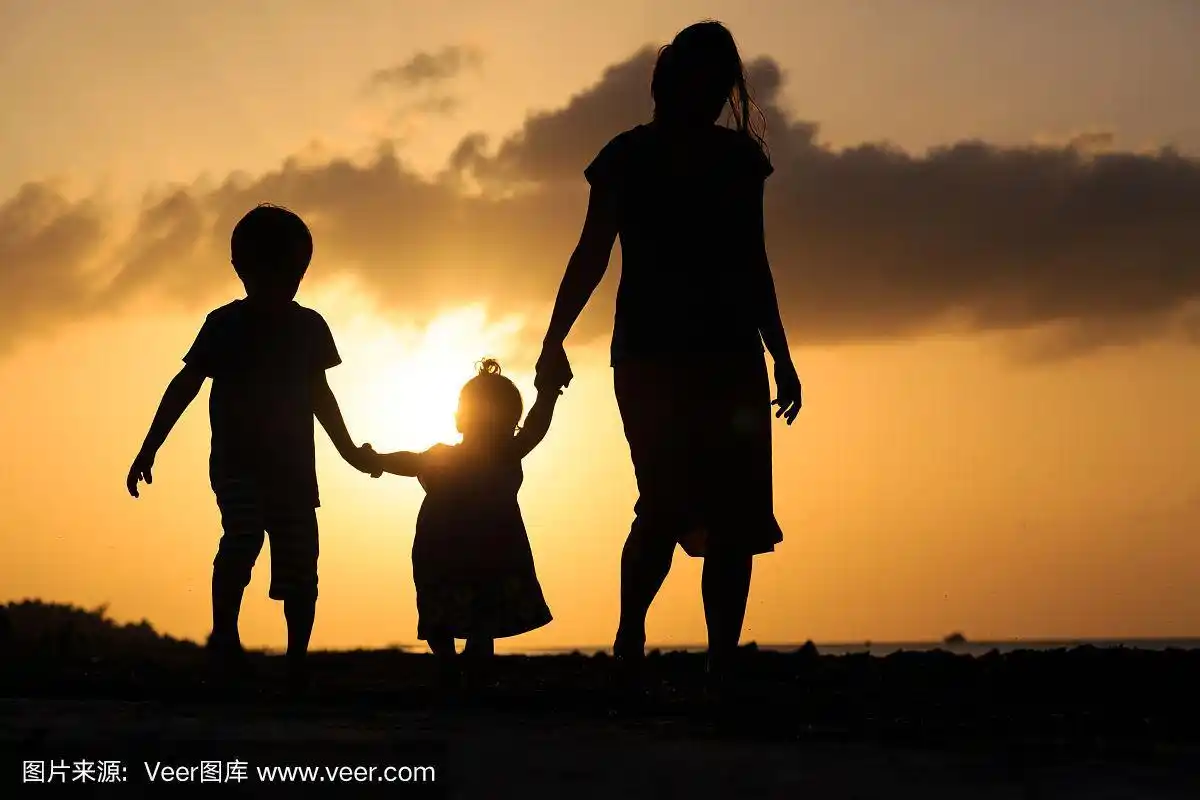 silhouettes 的母亲和两个孩子