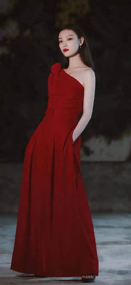倪妮新营业美照,穿抹胸红裙优雅迷人,长卷发慵懒又明艳_红色_玉墨