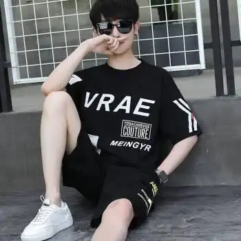 青少年套装男初中学生两件套短袖t恤男孩夏装13-15岁14男生连帽16