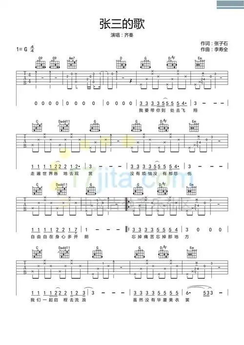 张三的歌(吉他谱)