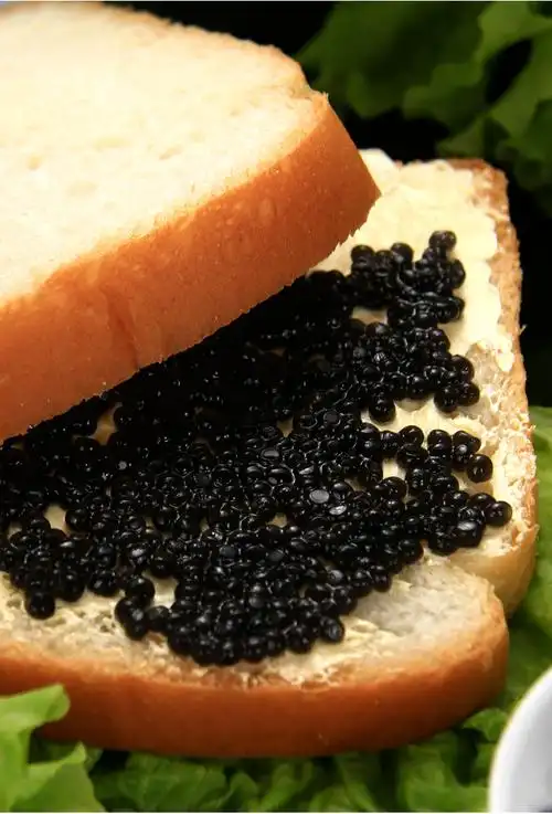 品黑鱼子酱喝伏特加酒满嘴尽是甘甜与芳香.