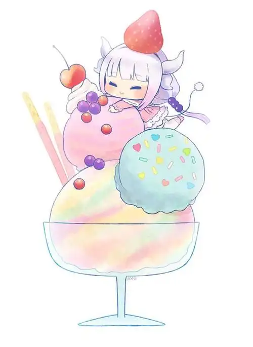 夏天冰淇淋二次元q版少女插画
