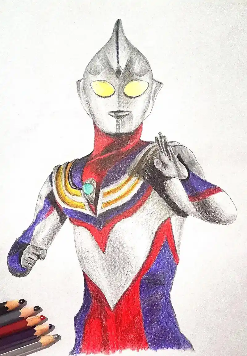 手绘迪迦奥特曼登场马克笔涂色示范快学了画一个漂亮的迪迦吧
