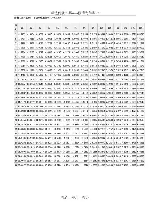 年金现值系数表(内带计算公式)