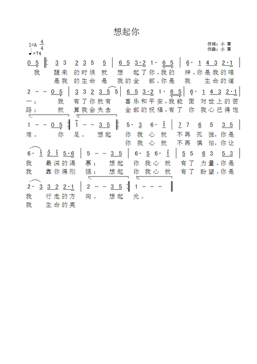 想起你 歌谱 简谱