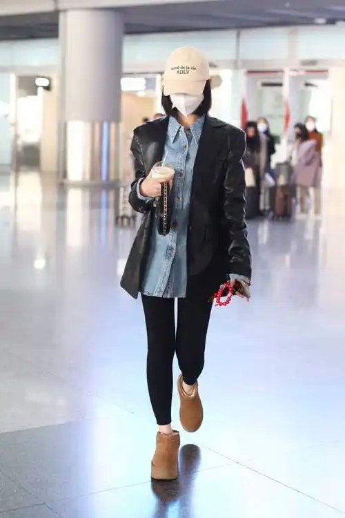 街拍:毛晓彤牛仔衬衫夹克 黑色紧身裤 棒球帽潇洒低调_毛晓影_北京