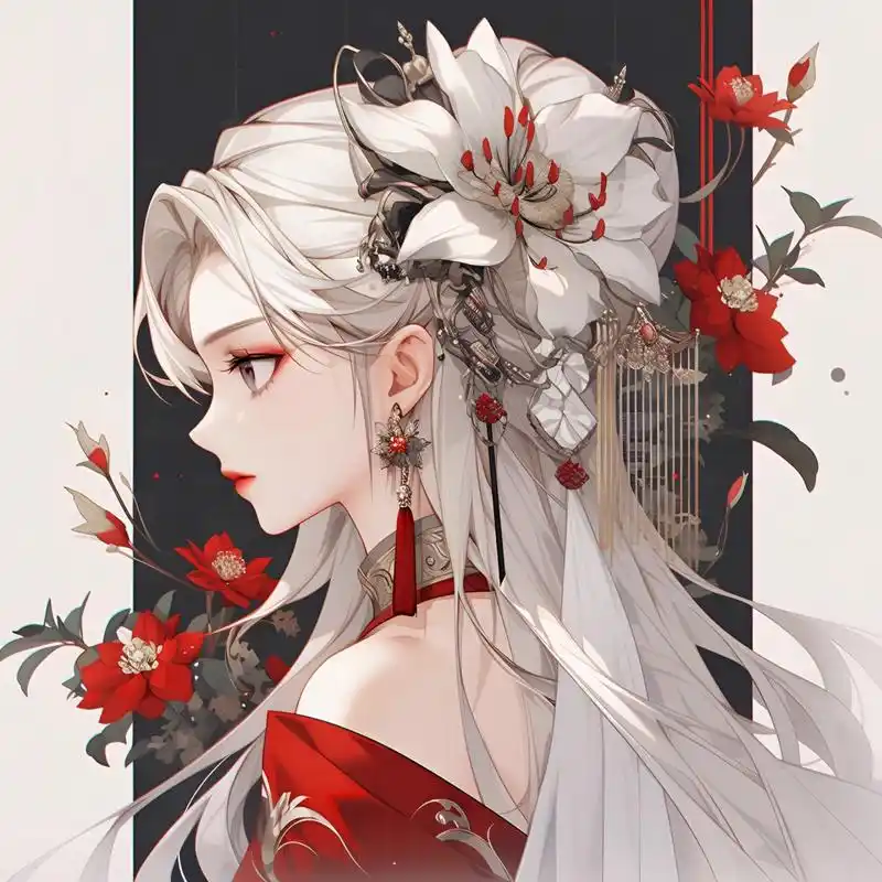 『古风女生头像』『白发红衣』 好吧,图④乱入一个黑发姑娘