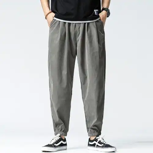 苏衿春男仕式宽松萝罗卜裤冬男士中加绒加厚呢裤子男中长裤裤定制