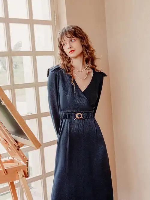诗凡黎经典藏青色连衣裙