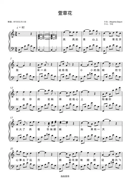 萱草花钢琴谱,难度3 #钢琴 #五线谱 #钢琴谱 #萱草花 - 抖音