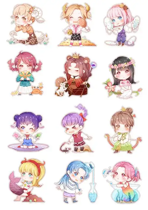 原创贴纸12星座q版人物设计