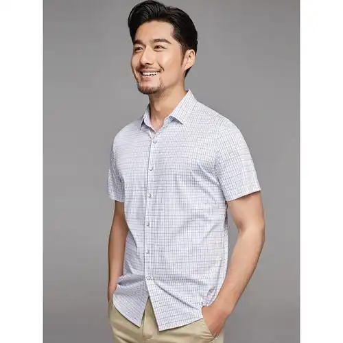 恒源祥薄款长袖衬衫男春秋季竹浆纤维简约轻商务休闲易烫格子衬衣爸爸